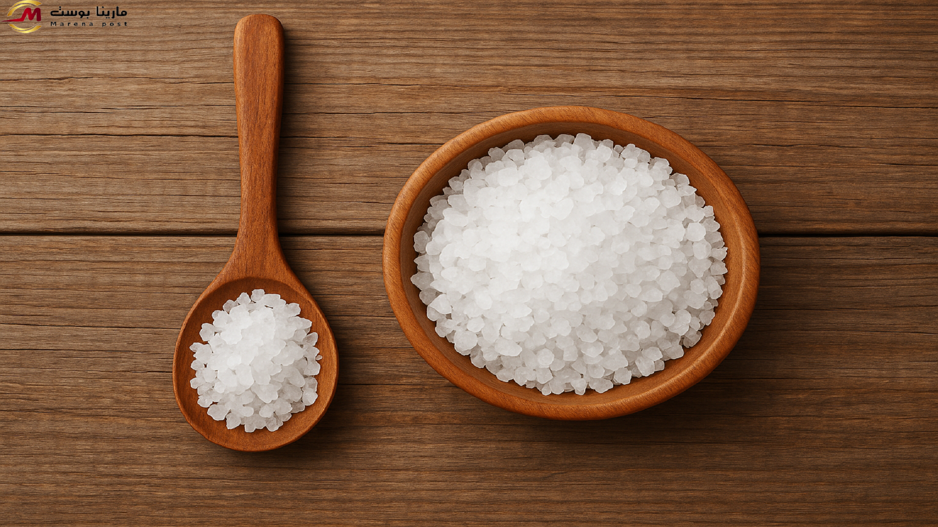 اريد صورة لمعلقة خشبية للملح ويوجد بجانب المعلقة صحن خشبي يوجد فيه ملح ممتلئ بالملح وخلفية الصورة خشبية في كل وجبة نتناولها، يتسلل "الملح" دون أن ننتبه، نضيفه للطعام لنحسن النكهة، لكنه في الحقيقة قد يكون العدو الأكبر لصحتنا. هل تعلم أن الإفراط في استهلاك الملح يُعد من أخطر العوامل المسببة للأمراض المزمنة حول العالم؟ هذا ما يدفع بعض الخبراء لتسميته بـ"السم الأبيض". في هذا المقال، نكشف لك كيف يدمر الملح الجسم بصمت، ولماذا يجب أن تتعامل معه بحذر، دون أن تحرمه تمامًا.